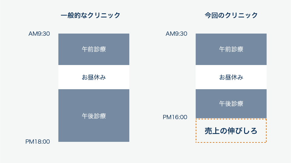 このようなケースの場合には、診療時間を延ばす(元に戻す)ことで一定の売上UPが見込める可能性が出てきます。